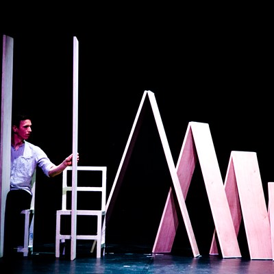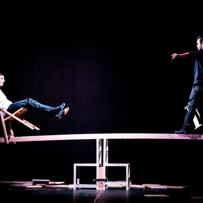 Em cena temos duas personagens e uma arquitetura de pranchas de madeira. Uma imagem surrealista e minimalista ao mesmo tempo e uma estética elegante, na qual se desenvolve um jogo extremo: a procura dos limites do equilíbrio entre os corpos e as construções geradas com as pranchas de madeira.