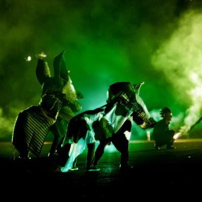 Mais de duzentos atores e músicos (orquestra, banda e coro), construtores, técnicos, pirotécnicos, cenógrafos, videastas, fotógrafos, produtores… farão nascer, numa semana intensiva de oficina de construção e ensaios musicais, teatrais e coreográficos, uma noite que, tal como em anos anteriores, ficará inesquecível. Todo o espaço do Novo Ciclo ACERT está povoado de criadores que, ao longo do período preparativo, enriquecem artisticamente um projecto. Como um puzzle, todo o processo se vai complementando para transformação experimental de um ritual que, ano a ano, se reinventa imaginativamente.