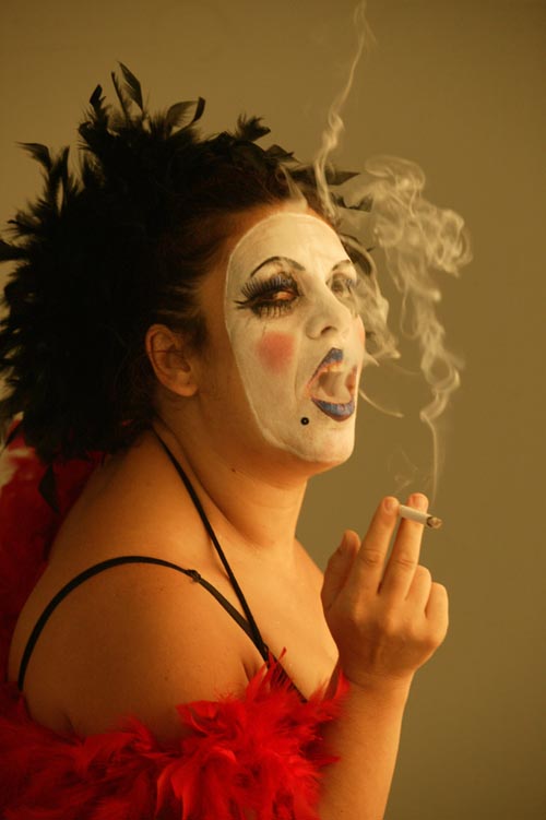 Eu não posso falar profundamente do cabaré alemão, não vivi em Berlín nos anos 30. Nem do francês, no entanto, ter-me-ia encantado ver o espectáculo que fazia La Goulue no Mouline Rouge. Nem sequer do cabaré português, dos botequins vadios. Mas posso falar sim do cabaré galego, o porquê da minha eleição desta forma de expressão e o porquê do público precisar de ouvir o que a gente de teatro pensava do Prestige e da Guerra do Iraque. O cabaré na Galiza ressurgiu como anteriormente durante uma grande crise na qual a sociedade não tinha uma visão real do que se passava. A censura não permitia que tivessem outra óptica. Por isso nós fomos os cronistas do momento. As pessoas iam aos espaços clandestinos, ao teatro da noite para se informar e rir-se da situação surreal que estávamos (e continuamos)a viver. Esse é o nosso trabalho. Porque também nós, quando subimos ao palco, temos o figurino salpicado de sangue e os sapatos manchados de petróleo.