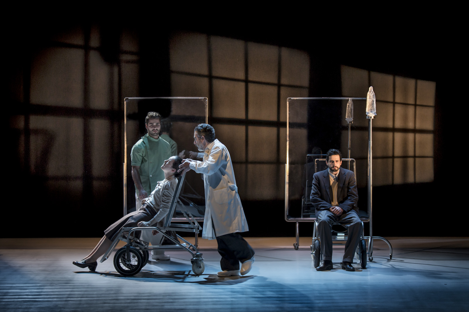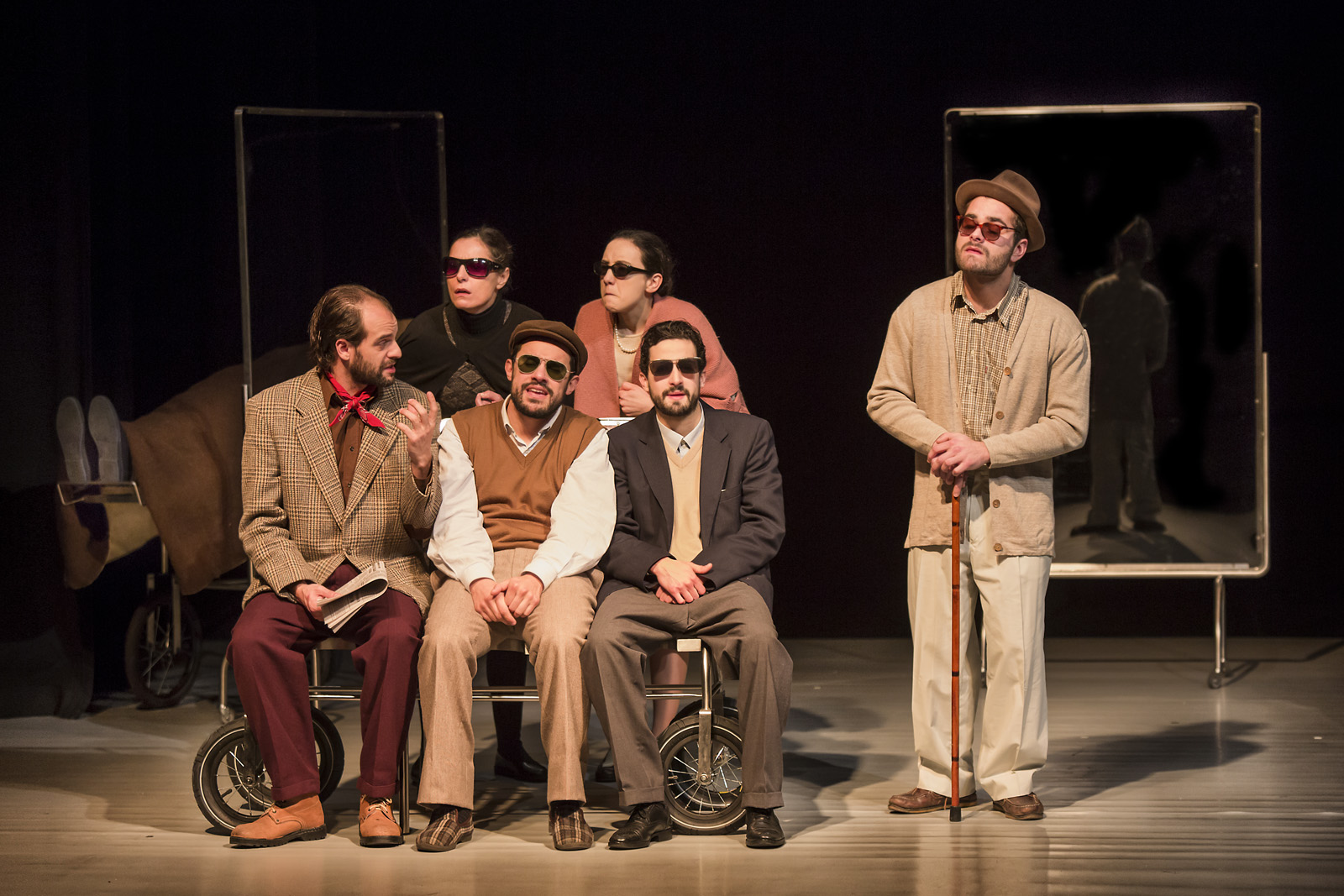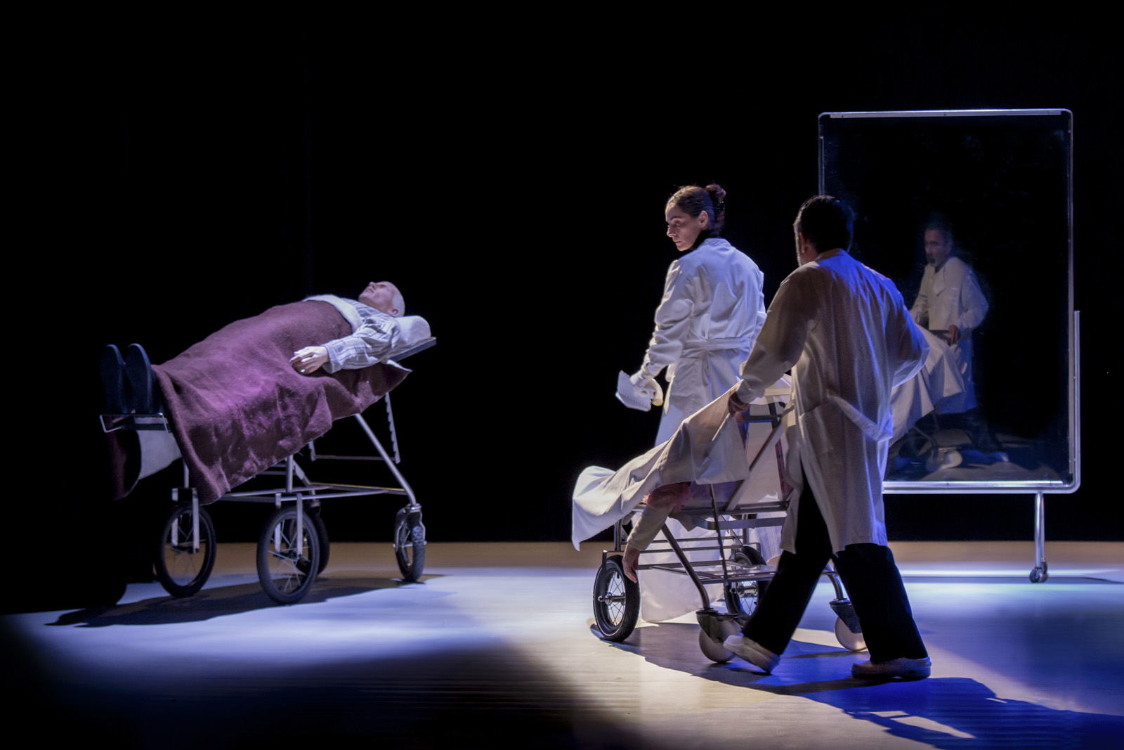 As personagens saíram das páginas do livro e procuraram o palco, como nova morada. A encenação andarilhou nos ajustes que a dramaturgia ia exigindo para revelar cada uma das situações vivenciadas. As leituras teatrais apuravam as tensões teatrais para que os personagens emergissem. Na sucessão de cada etapa, os atores estabeleceram afinidades com os personagens com quem passaram a pernoitar apaixonadamente. Relação carnal, emotiva e sincera. Cada idoso do lar “Feliz Idade” deu consentimento a cada intérprete para ingressar, à sua maneira, nas suas vidas sem se importunarem pela diferença de idades, mas zelosos pela autenticidade emocional das suas personalidades.