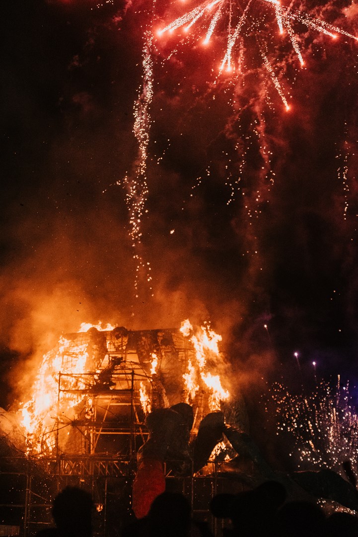 Desde então, todos os anos é construído um novo espetáculo com uma nova dramaturgia, uma nova composição musical, novos figurinos, novas coreografias e um novo “boneco” representativo de todos os males que nos assolaram no ano anterior e que, ao ser queimado no final da representação, nos deixa a todos, participantes e público, de alma lavada e preparados para enfrentar mais um ano.