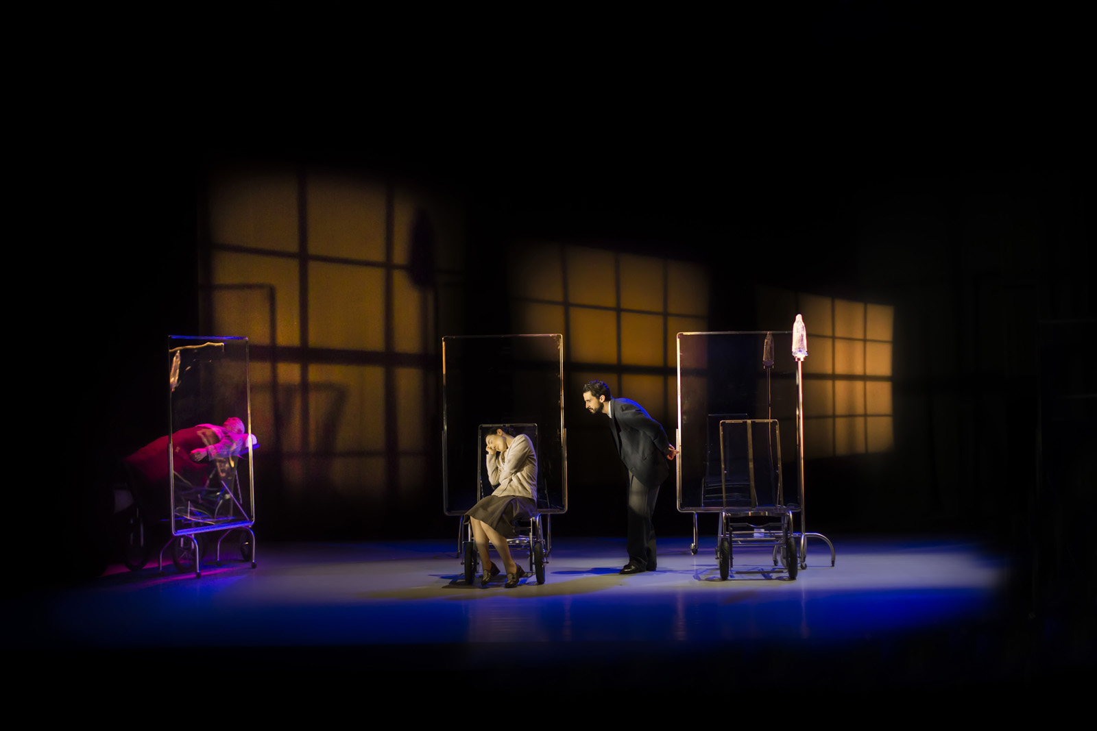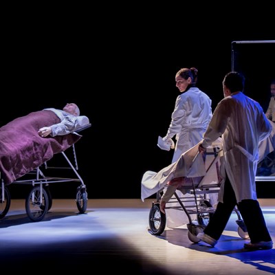 As personagens saíram das páginas do livro e procuraram o palco, como nova morada. A encenação andarilhou nos ajustes que a dramaturgia ia exigindo para revelar cada uma das situações vivenciadas. As leituras teatrais apuravam as tensões teatrais para que os personagens emergissem. Na sucessão de cada etapa, os atores estabeleceram afinidades com os personagens com quem passaram a pernoitar apaixonadamente. Relação carnal, emotiva e sincera. Cada idoso do lar “Feliz Idade” deu consentimento a cada intérprete para ingressar, à sua maneira, nas suas vidas sem se importunarem pela diferença de idades, mas zelosos pela autenticidade emocional das suas personalidades.